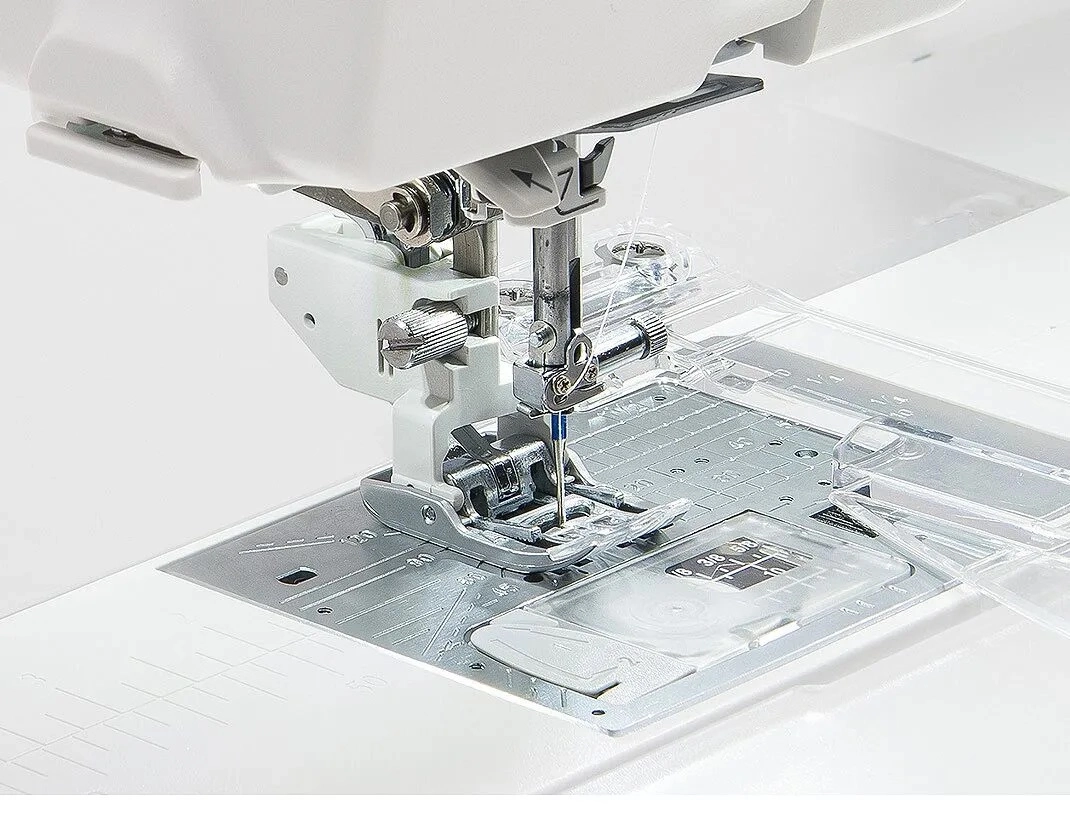 Квилтеры и дизайнеры по достоинству оценят систему подачи многослойной ткани AcuFeed™ Flex, автоматический подъем прижимной лапки и электронный автоматический регулятор натяжения.