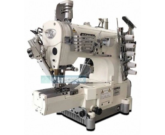 Промышленная трехигольная пятиниточная плоскошовная машина с автоматическими функциями, верхним и нижним застилом и цилиндрической платформой (диаметр 90 мм) для подгибки края изделия